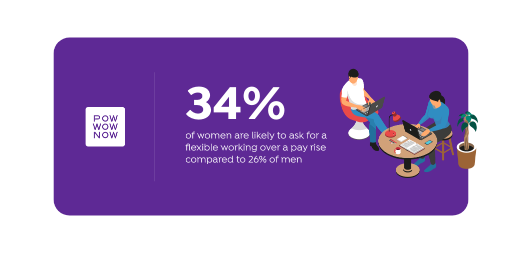 - Women (34%) are more likely to ask for flexible working over a pay rise compared to men (26%)