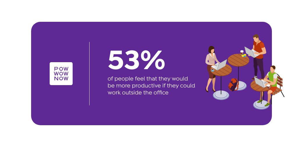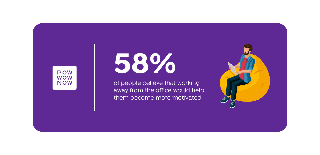 After all… 58% of people believe that working away from the office would help them become more motivated, and 53% feel that they would be more productive if they would work outside the office.