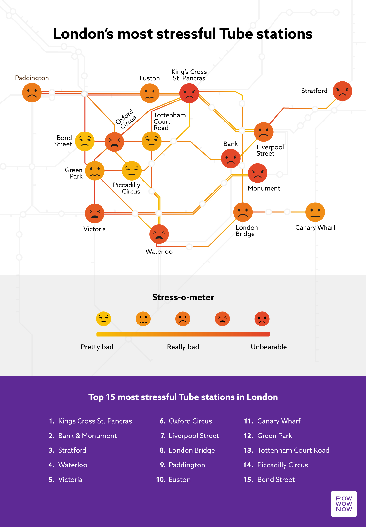 Many of these tube stations tend to be close to tourist destinations, so you might want to avoid them if you’re not sightseeing. Unfortunately, although not unsurprisingly, our top 15 stations that are worst for stress are also popular areas for business.
